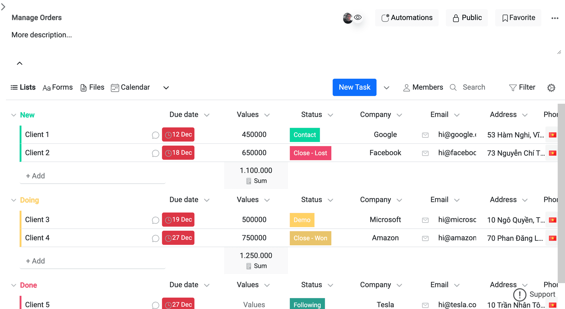 With a project management tool, you can maintain accountability, keep work moving across teams, and bring clients into the loop as and when you need to